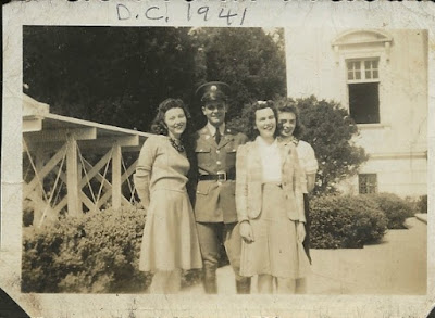 The photo was taken in Washington D.C. in 1941. I'm assuming the other two young women are friends of hers and the soldier is someone they posed with as they were seeing the sights.